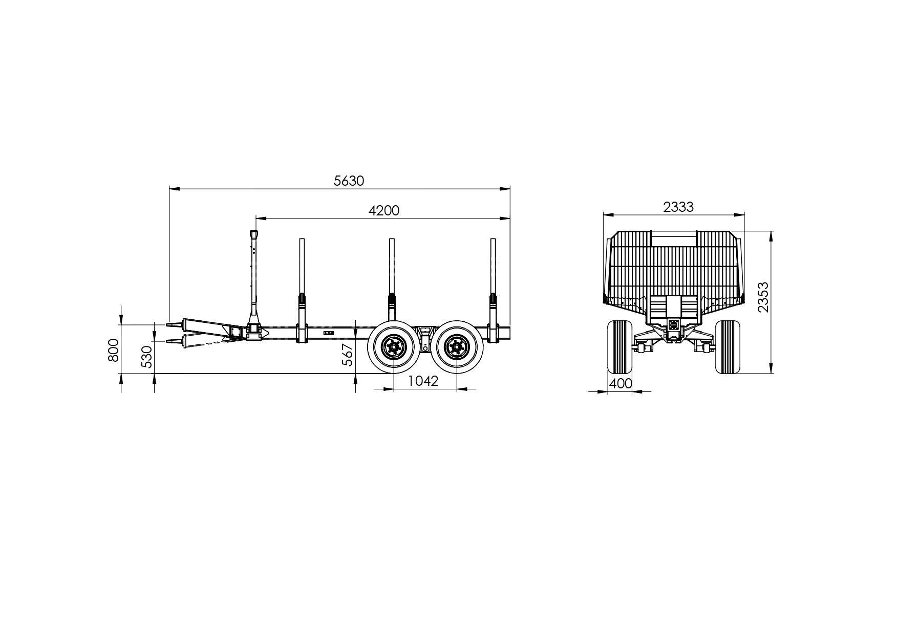 A rakodófelület mérete 2,2–2,5 m², amely elegendő helyet biztosít a rönkök biztonságos elhelyezéséhez. A pótkocsi kialakítása lehetővé teszi különböző erdészeti kiegészítők, például daru vagy egyéb opciók integrálását is, így a gép könnyen az adott felhasználási igényekhez igazítható.