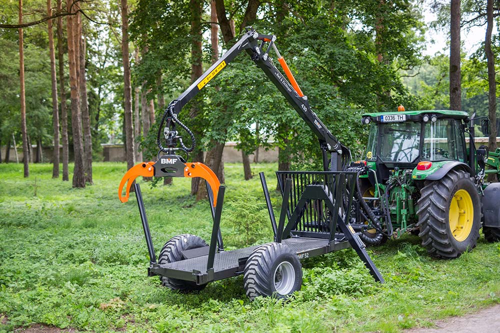 A 2500 kg saját tömegű robusztus szerkezet hosszú élettartamot és megbízható működést garantál intenzív erdészeti használat mellett is. A daru különböző BMF erdészeti kiközelítő pótkocsikra szerelhető, és többféle kiegészítővel – például markolókkal, rotátorokkal, világítással vagy vezérlőszelepekkel – bővíthető.